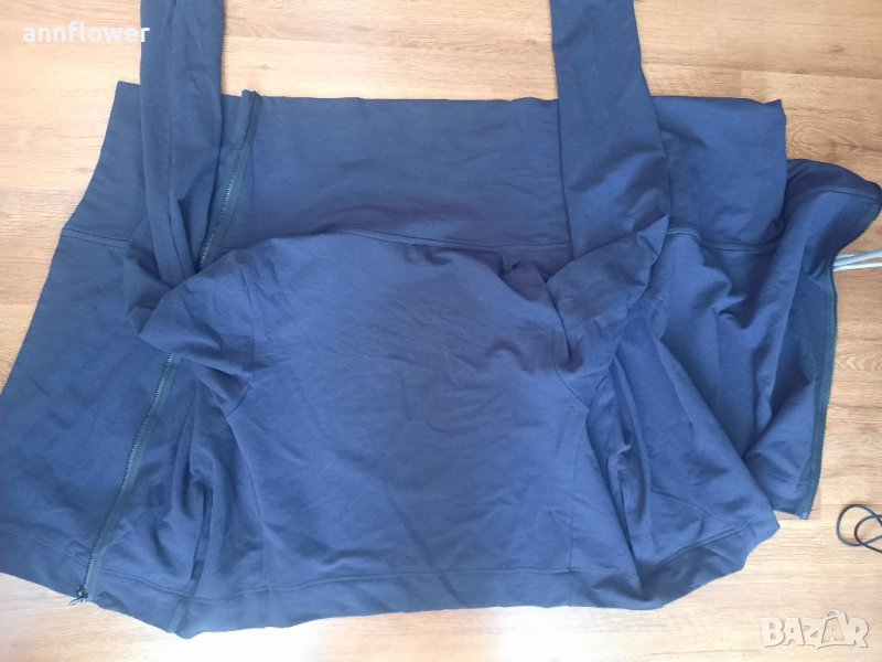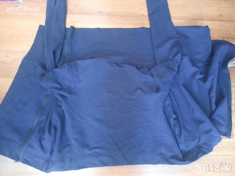 Горнището е ново но няма етикет. Несполучлив подарък. Цвят тъмно син. Материя памук и полиестер. Размер XL. Дължина 44см, ширина в мишниците едностранно измерена на гърбът 48см отпред е по широко.
