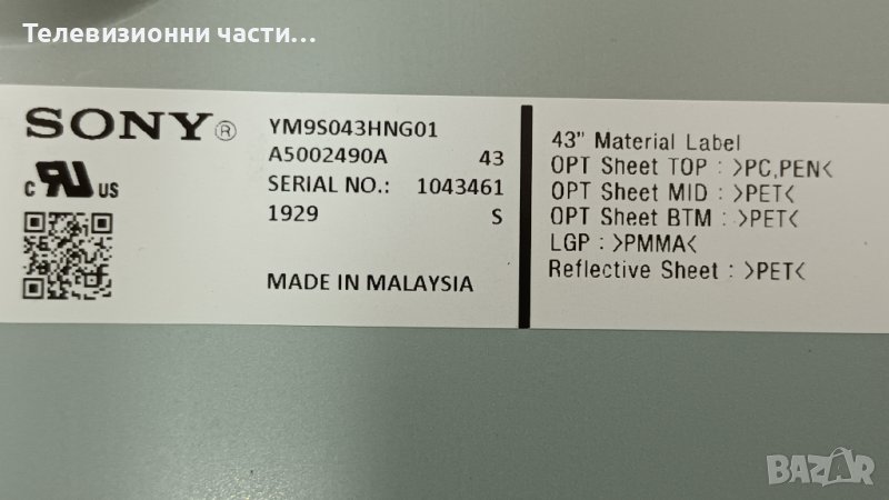 Sony KD-43XG8196 със счупен екран.Панел YM9S043HNG01
