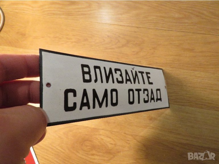 Рядка емайлирана табела ВЛИЗАЙТЕ САМО ОТЗАД от 70те - за вашета фирма, офис, цех, завод или колекци