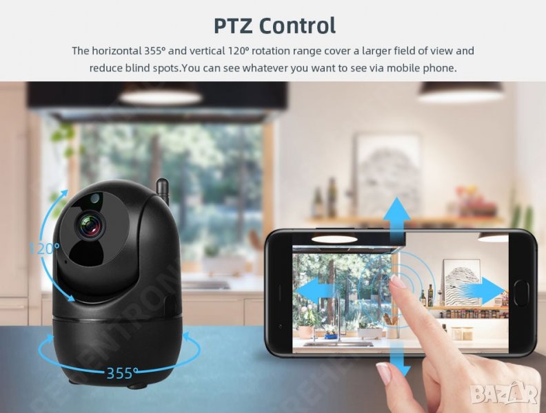 9. PTZ контрол на въртенето на камерата без слепи зони: