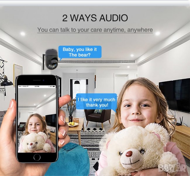 - двупосочно аудио. Вграден микрофон и високоговорител, можете да говорите с хора в реално време
