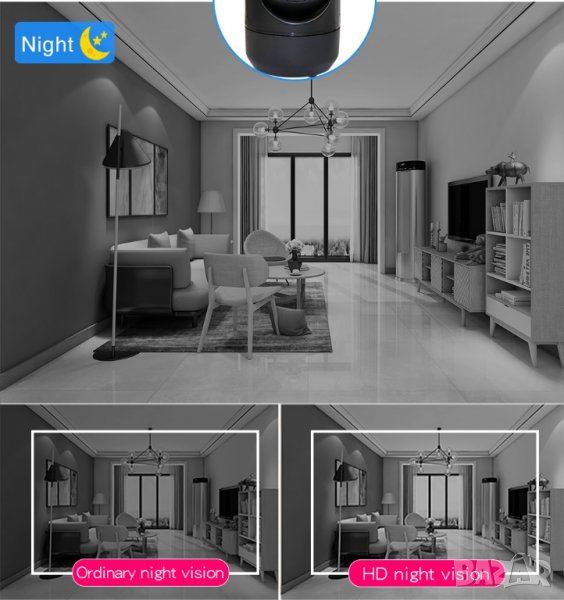 - PIR Motion Detection. Високочувствителен сензор за движение, когато камерата открие обекти, приложението ще изпрати известие.