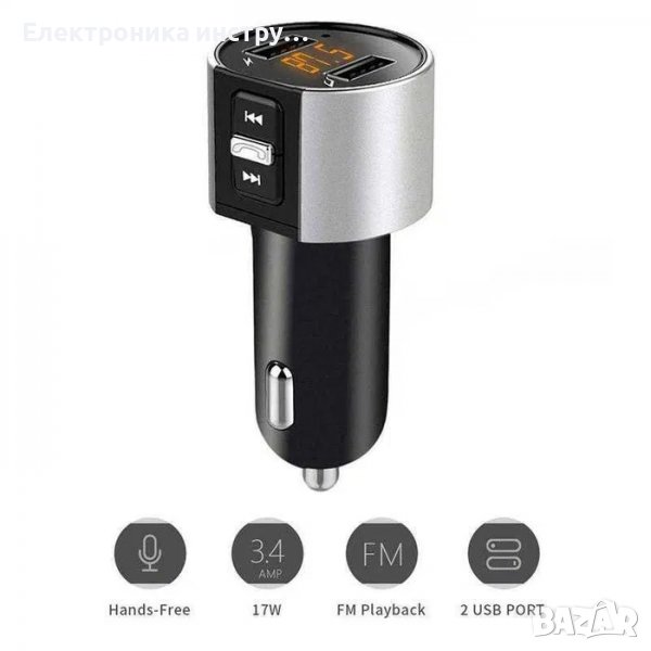 FM трансмитер 12/24V - bluetooth за кола., снимка 1 - Аксесоари и консумативи - 38222573 FM трансмитер 12/24V - bluetooth за кола., снимка 2 - Аксесоари и консумативи - 38222573 1/2