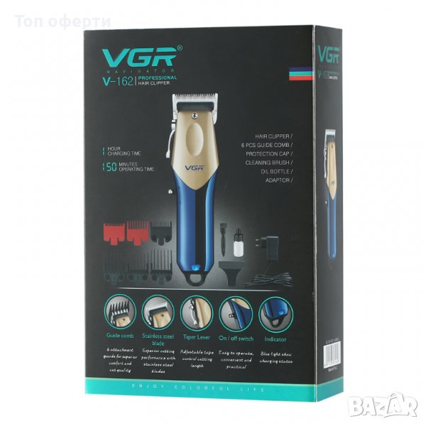 VGR V-162 Тример за коса, брада, акумулаторна електрическа машинка за подстригване за мъже