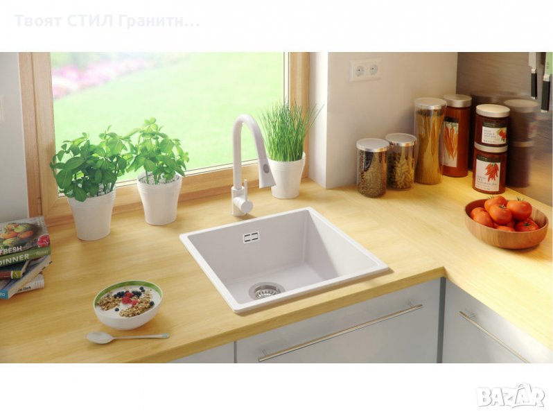 Кухненска Мивка от Гранит модел Лондон Слим 460 x 440 мм - Бял