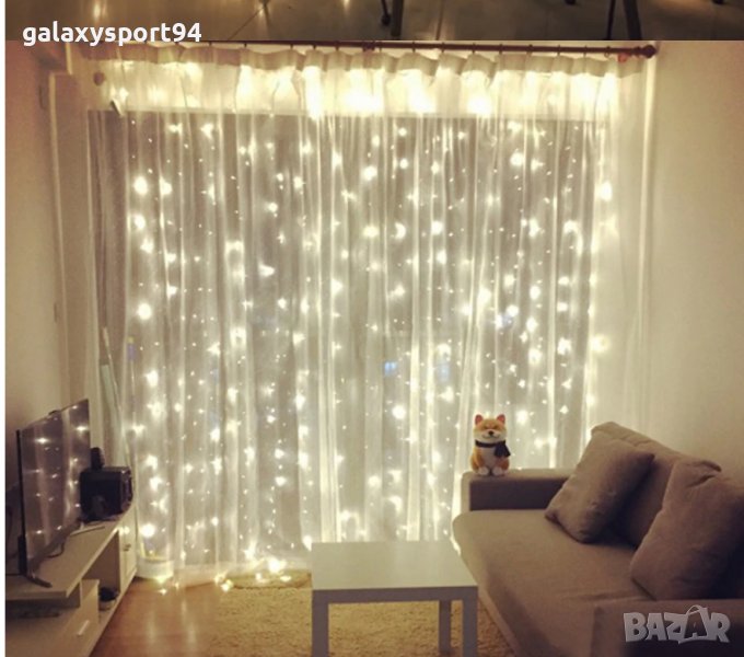 7)LED Завеса 2 х 1.5 м 300лампи с Опция Снаждане