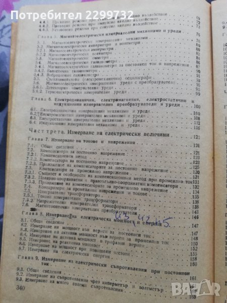 „Електрически измервания“ -Учебник за технически ВУЗ ; твърди корици; в много добро състояние.Автори Н.Колив, Ат.Лазаров, Ем.Манов, Б.Матраков, В.Туренков. В учебника са дадени основни сведения за устройството и приложението на най-разпространените електроизмервателни средства и са разгледани методите за измерване на електрически, неелектрически и магнитни величини. Изложени са основите на теорията на измерването, теорията на грешките и обработката на резултатите от измерването.
