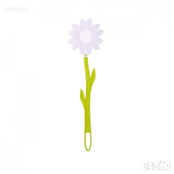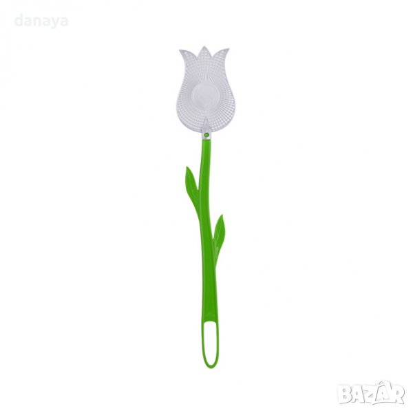 Цветна мухобойка с форма на цвете маргаритка или лале. Лека, практична и удобна. С дупка за закачане, когато не се използва. Предлага се в различни цветове – бял, червен, жълт. При поръчка, уточнете желаният цвят.