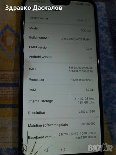 Huawei Honor 10 , 4/128ГБ, 2 сим → Обява 38231309