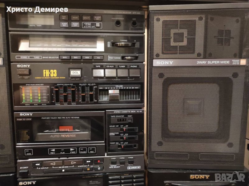 SONY FH -33.Работи и функционира всичко. Иска лека профилактика на потециометри и настройка .Липсва дръжката и метални лайснички отстрани на тонколоните