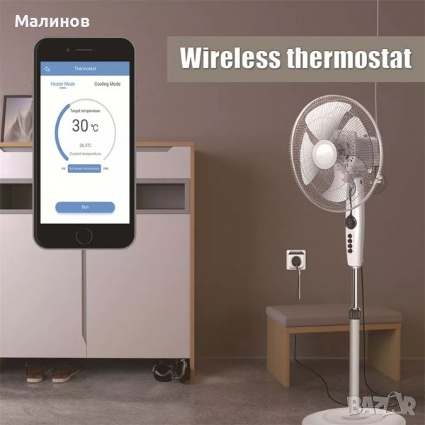 Можете включите или изключите старата си печка, радиатор или керамичен панел, климатик без wifi термостат в устройството и да ги управлявате по всяко време, лесно и удобно с обратен брояч за време или по зададена в стаята температура през мобилния си телефон. Нужна е само безжижна връзка с домашната Ви интернет мрежа.