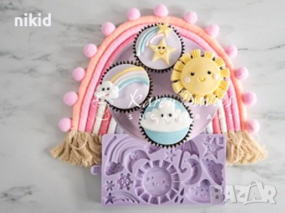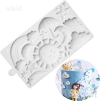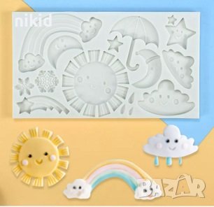Време Прогноза небе Слънце дъга чадър облак звезда луна снежинка силиконов молд форма фондан → Обява 38235394