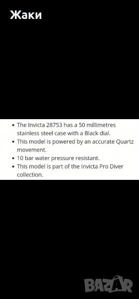 Invicta Pro Diver 28753 Men's Quartz Watch - 50mm, снимка 1 - Мъжки - 38235830 Invicta Pro Diver 28753 Men's Quartz Watch - 50mm, снимка 2 - Мъжки - 38235830 Invicta Pro Diver 28753 Men's Quartz Watch - 50mm, снимка 3 - Мъжки - 38235830 Invicta Pro Diver 28753 Men's Quartz Watch - 50mm, снимка 4 - Мъжки - 38235830 Invicta Pro Diver 28753 Men's Quartz Watch - 50mm, снимка 5 - Мъжки - 38235830 Invicta Pro Diver 28753 Men's Quartz Watch - 50mm, снимка 6 - Мъжки - 38235830 Invicta Pro Diver 28753 Men's Quartz Watch - 50mm, снимка 7 - Мъжки - 38235830 Invicta Pro Diver 28753 Men's Quartz Watch - 50mm, снимка 8 - Мъжки - 38235830 Invicta Pro Diver 28753 Men's Quartz Watch - 50mm, снимка 9 - Мъжки - 38235830 1/9