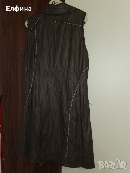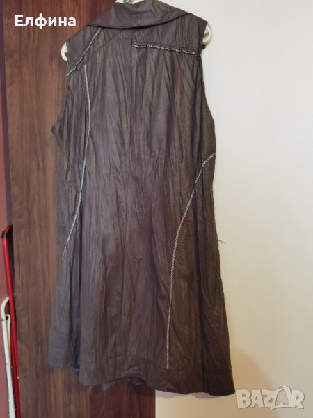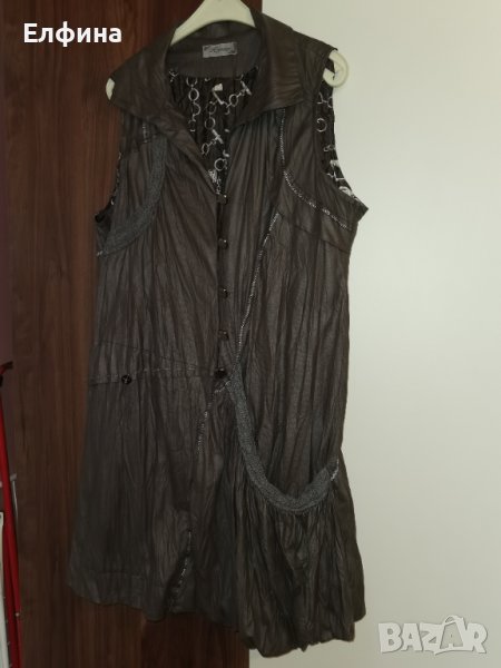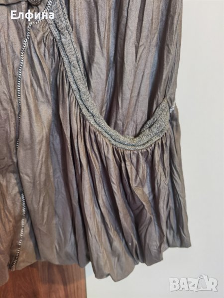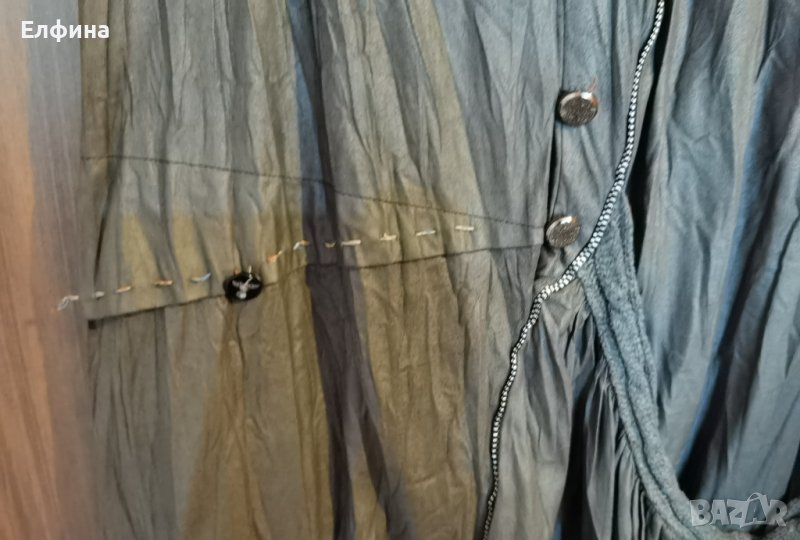Сива рокля като материята имитира кожа. Но е тънка и мека. Фабрично набръчкана. Има подплата. Може да се носи и като туника с клин отдолу и блуза с къс или дълъг ръкав.