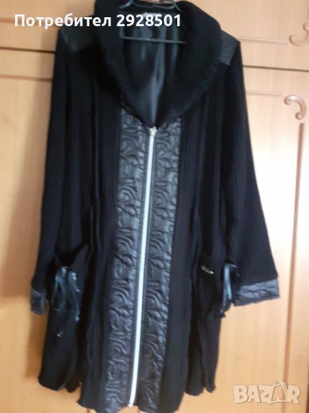 Продавам черна дамска жилетка. Размер, посочен на етикета - 58, дължина - 92 см.