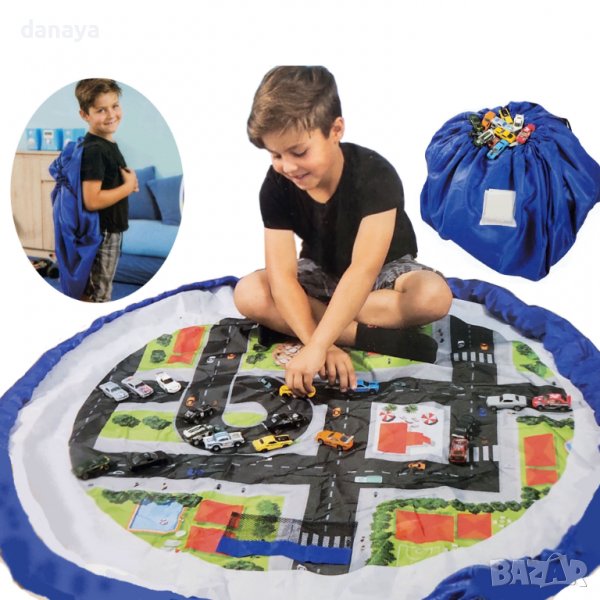 органайзер за играчки Лего или други дребни играчки. Практично детско килимче за игра с писта, с което лесно ще съберете всички разпилени играчки наведнъж. Килимчето е особено подходящо за играчки от типа конструктор Lego, пъзели. С тази преносима постелка за игра осигурявате забавна и весела игра на децата, без да се притеснявате, че после ще събирате парченцата поне час от пода. След като играта приключи, просто съберете килимчето и то ще се превърне в торба-раница, която може да се съхрани в гардероб или на друго място.