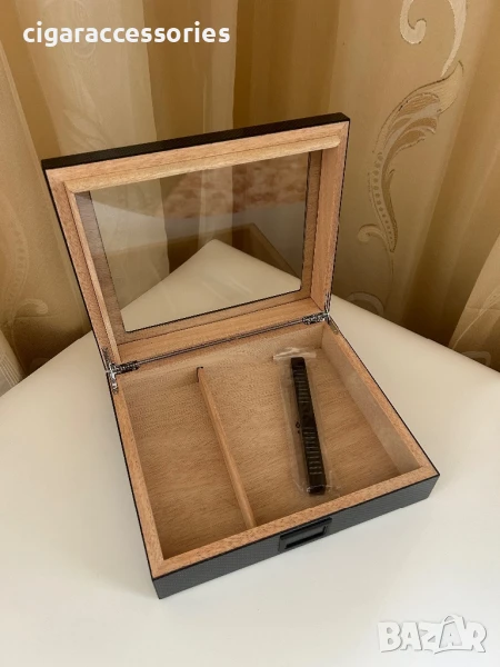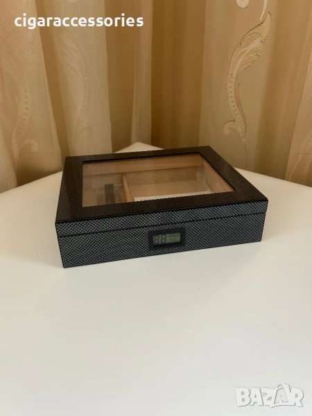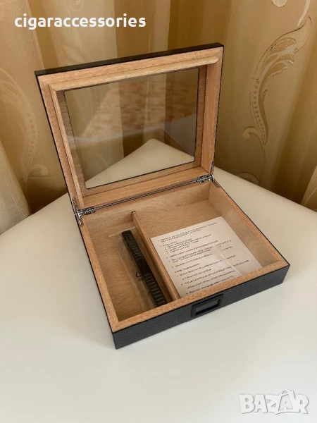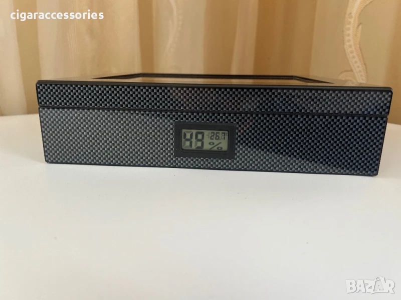 Хумидор за пури – испански кедър, карбонов дизайн, хигрометър