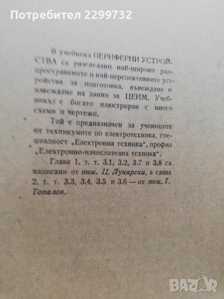 Периферни устройства– учебник за професионалните гимназии; меки корици. Учебника е в много добро състояние.