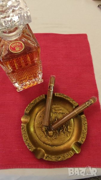 Стар месингов пепелник Франция. Пепелника е масивен с тегло 1.050 кг (1050 грама) и диаметър 17.5 см. Пепелника е за пури, но може да се ползва и за цигари. В отлично състояние.