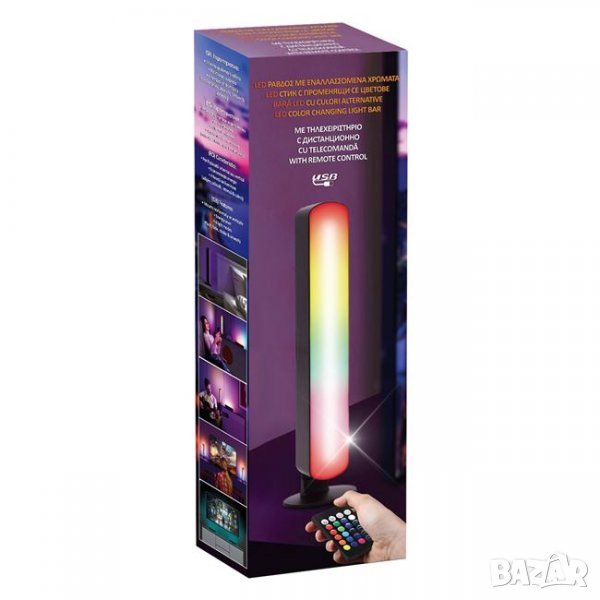 USB led стик с редуващи се цветове с 4 режима на светене (мигащ, слаб, интензивен и спокоен). Спестява енергия. Има дистанционно управление, което работи с батерия тип CR2025-2032 (включена).