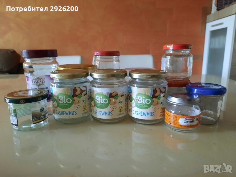 Буркани с винтови капачки 500, 680, 720мл. с капачките около 100бр. цена: 60ст.