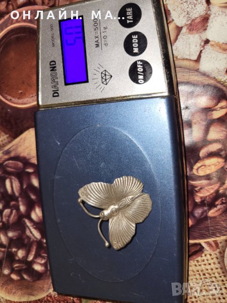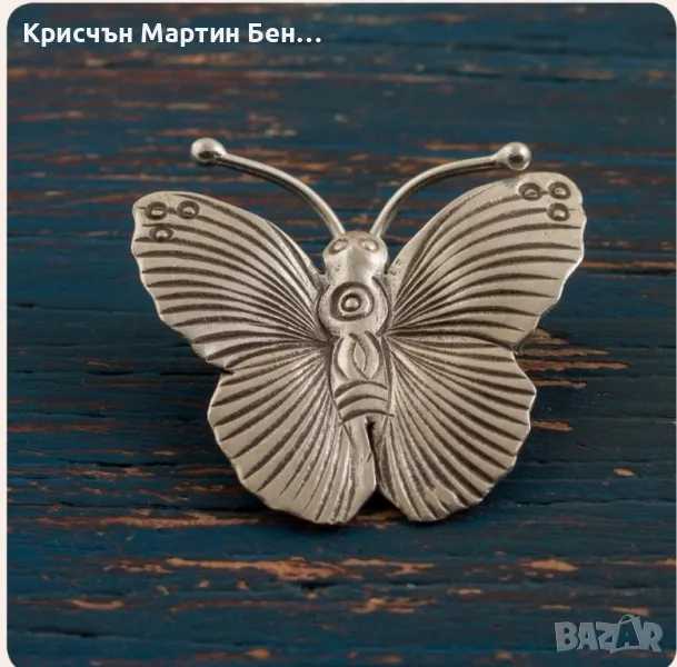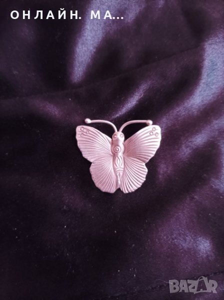 Сребърен медальон с изобразена пеперуда.