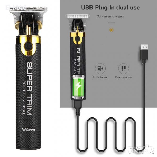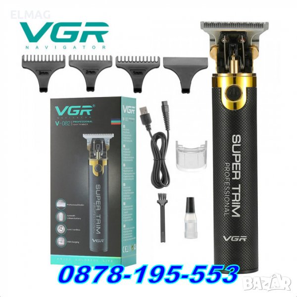 Професионален електрически тример VGR V-082 - самобръсначка за бръснене, подкъсяване и оформяне на косата, лицевото окосмяване - брада, мустак и вежди и даже интимната зона. С бързо USB зареждане - лесно и удобно за употреба у дома или на път.
