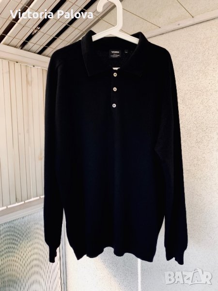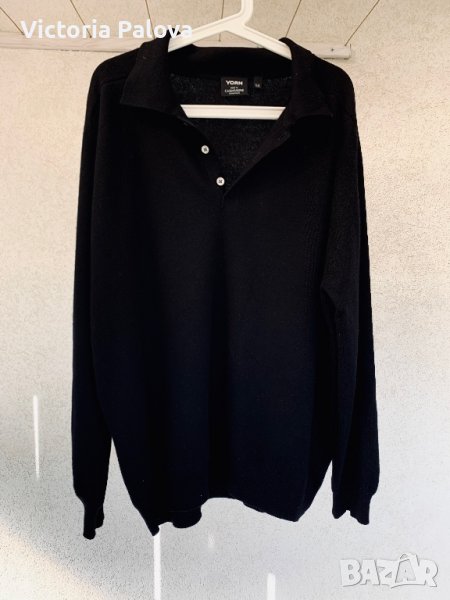 Блузата е лека и много мека,кашмирът е особен ,zweifädig,двуслоен.много красиви перлени копчета,маркирани.дизайнерът е Юрген Михаелсен-първият немец,покорил модния Париж.след 5 минутно запознанство Кристиан Диор го прави негов асистент,след това Юрген става любимец на легендарния кутюрие,псевдоним и лейбъл-YORN.ГО-67см,дължина-74 см.
