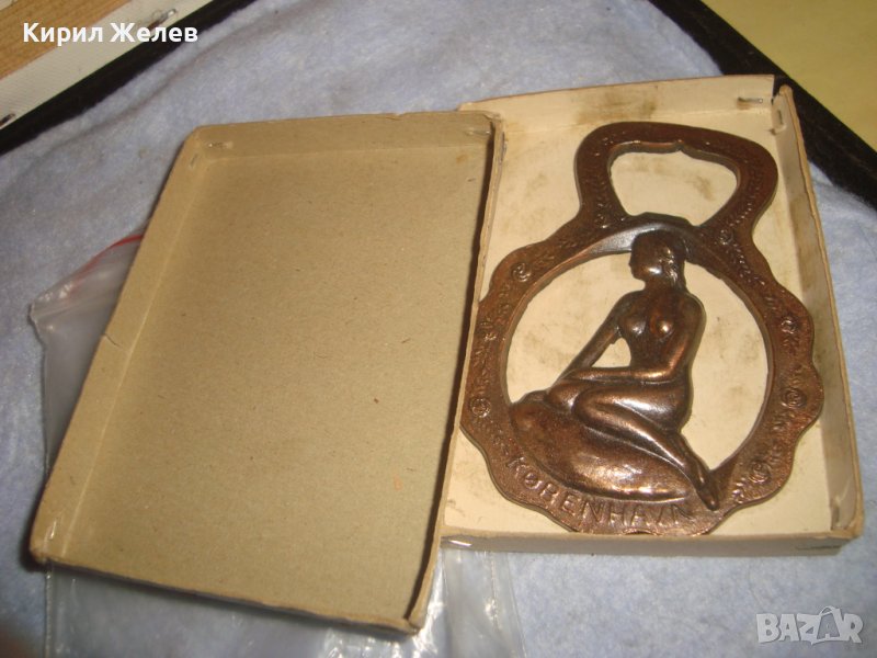КОПЕНХАГЕН РУСАЛКА СИМВОЛ на СТОЛИЦАТА на ДАНИЯ МЕДЕН СУВЕНИР - ОТВАРАЧКА в КУТИЙКА 15438