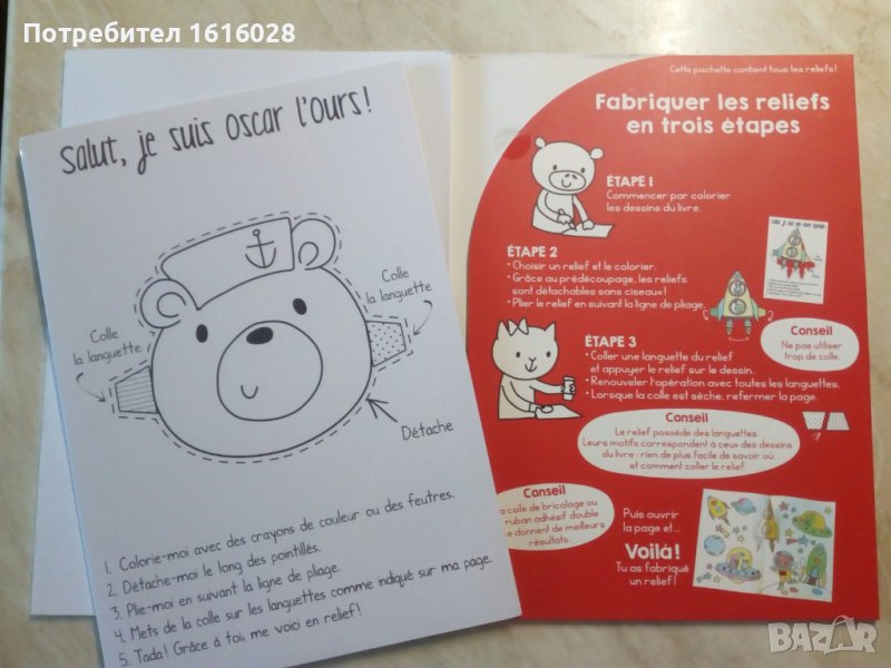 Две нови детски книжки на френски, но всяко дете до шестата си годинка само измисля думичките по картинките в книжките.Помагат за развитието на най - малките, когато се учат да разпознават животните,предметите,игрите,цветовете и да ги назовават с имена.