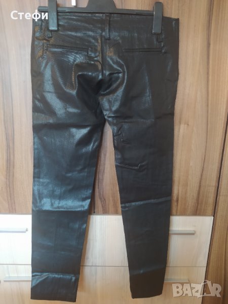 Дамски панталон като промазан е плата в черно . Номера S /M / L / XL. Панталоните са с Италиански страничен джоб.