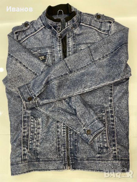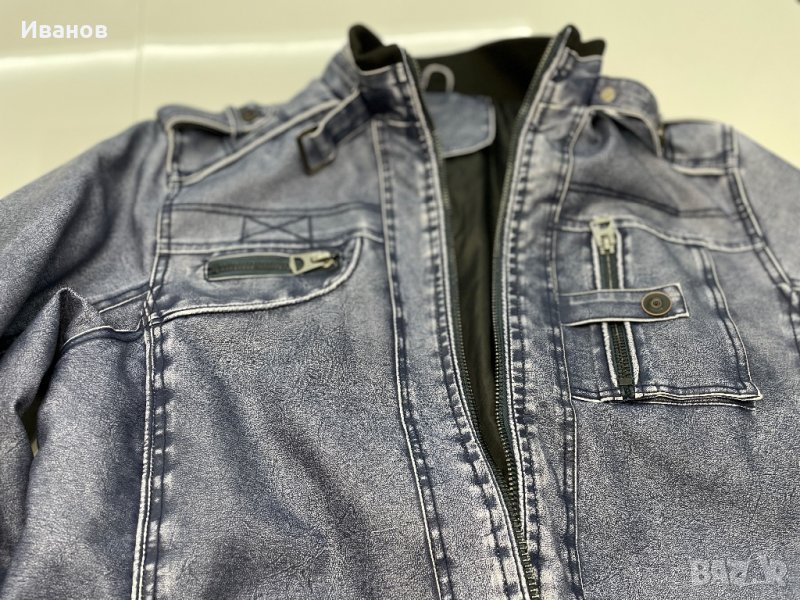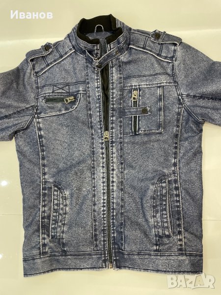 Чисто ново яке с много елегантна кройка от изкуствена кожа, имитираща дънкова шарка и ватирана подплата отвътре. Тежки и масивни ципове. Якето се усеща много приятно и е идеално за Пролетен или Есенен сезон…та дори и за през началните Зимни седмици.
