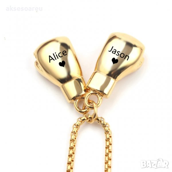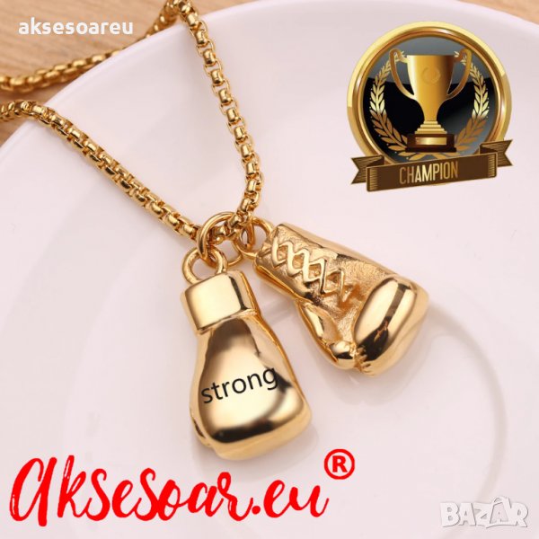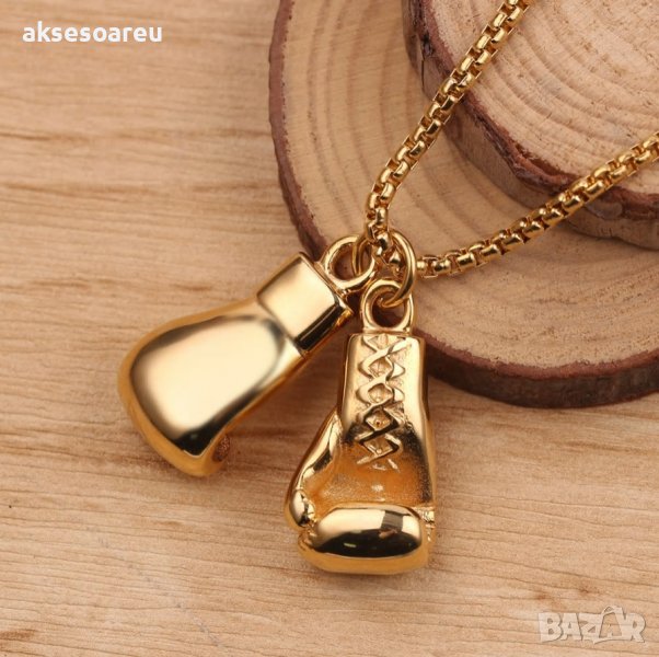 Синджир с висулка 2 мини боксови ръкавици колие хип-хоп верига спортни фитнес аксесоари бижута колиета боксова ръкавица