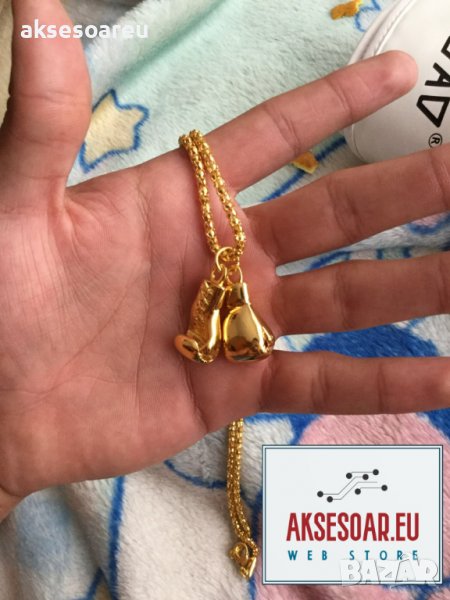 Синджир с висулка 2 мини боксови ръкавици колие хип-хоп верига спортни фитнес аксесоари бижута колие