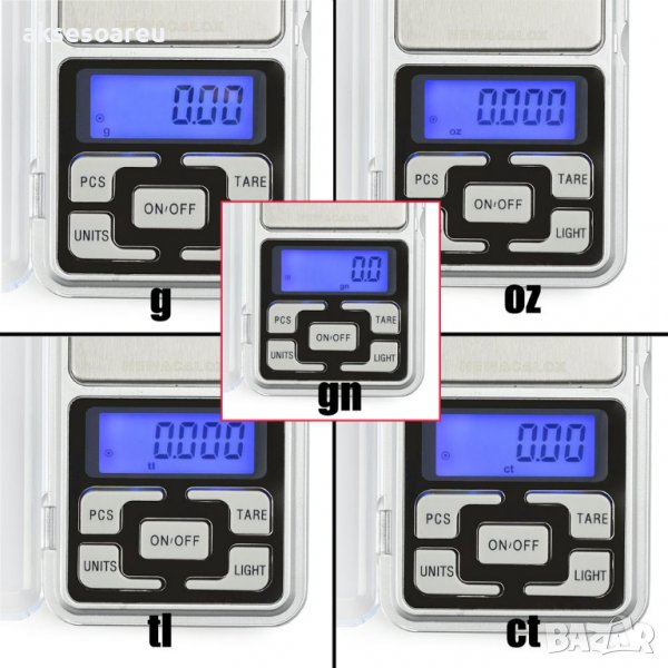 Мулти-единичен дисплей (g / tl / oz / ct)