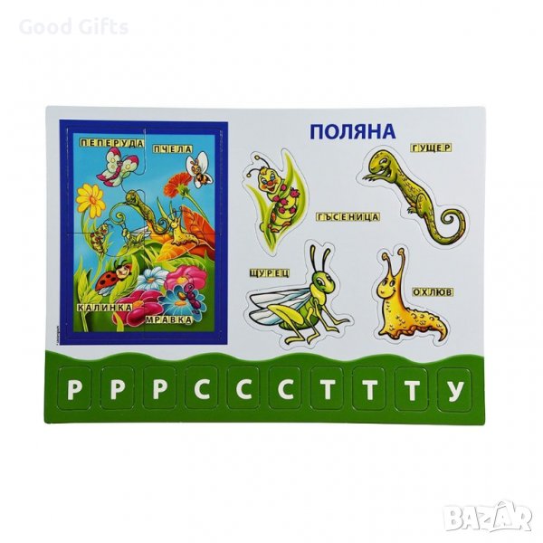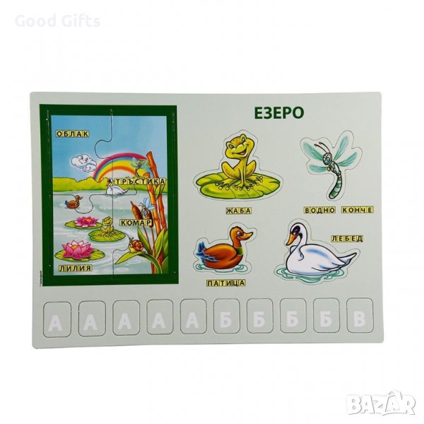 В комплекта има много елементи и букви от азбуката.