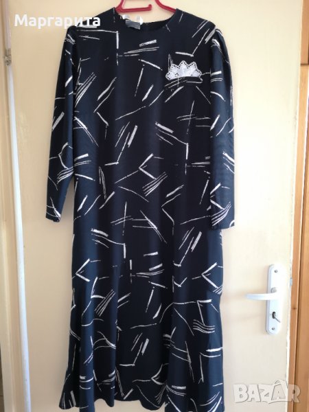 градуса. Цялата рокля е с черна подплата. Отзад има цип дълъг 47 см.