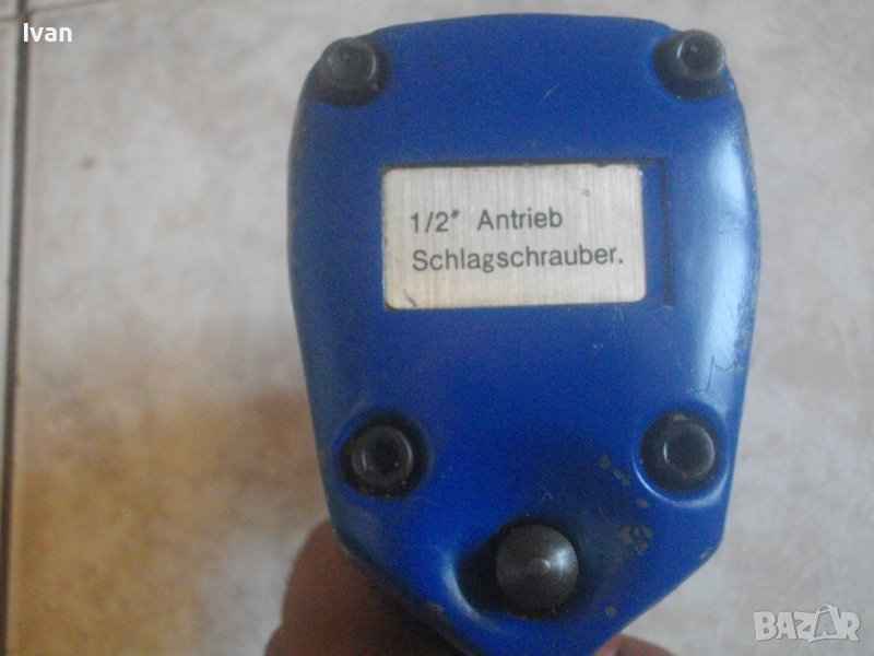 Почти нов, масивен, голям, колоритен пневматичен гайковерт с размер на главата за накрайници 1/2, работещ на сгъстен въздух.
