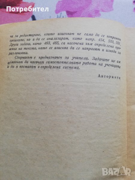 Задачи за упражнения по български език-меки корици; в много добро състояние. Учебното помагало е полезно както за преподаватели, така и за ученици и студенти.