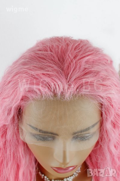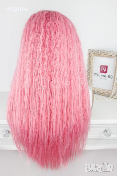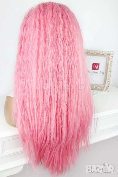 Дълга къдрава розова лейс фронт перука Уенди