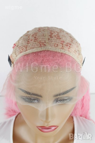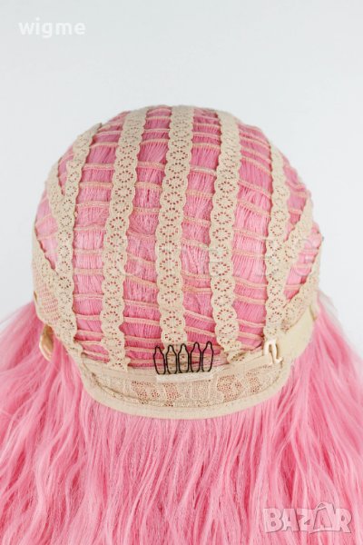 Дълга къдрава розова лейс фронт перука Уенди е с универсален размер – можете да регулирате широчината й с помощта на специални ластици, които задържат стабилно перуката върху главата Ви и предпазват от разместване.
