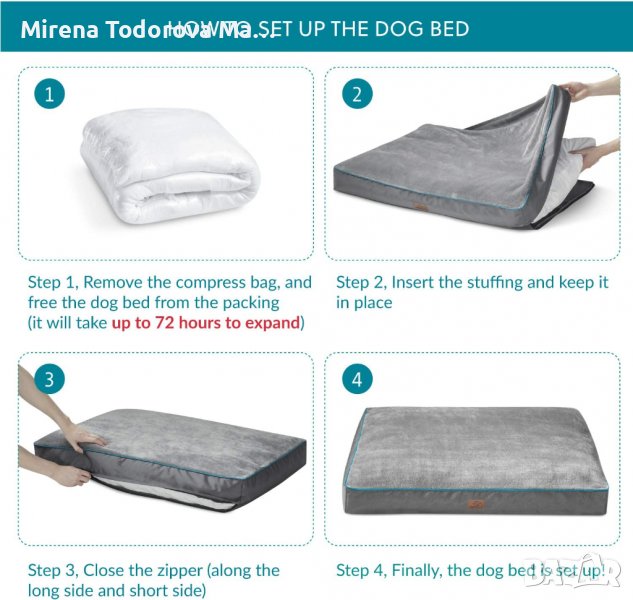 100% ВОДОУСТОЙЧИВА ВЪЗГЛАВНИЦА ЗА ЛЕГЛО ЗА КУЧЕ - Снабдена с вътрешна подплата с пълно покритие, за да предпази пълнежа от злополуки (Външното покритие НЕ е водоустойчиво)