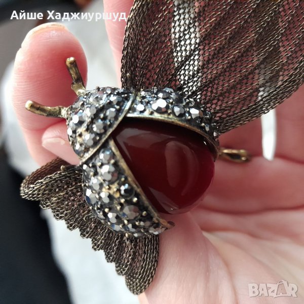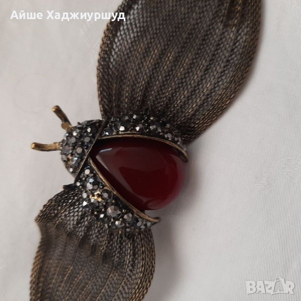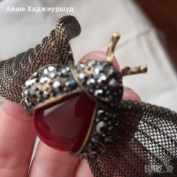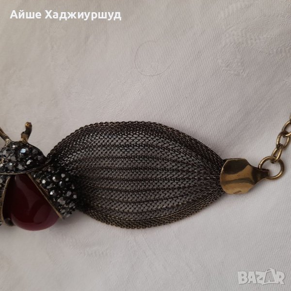 Гривна във вид на калинка с разперени криле. Телцето е от камък а по крилете има малки мъниста.С опция за регулиране. Дължина на цялата гривна 25 см.