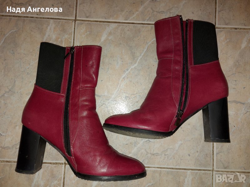 Дамски елегантни боти, естествена кожа, тъмночервени. Носени 2-3 пъти. Без забележки. Височина на тока 8 см. Номер 38.