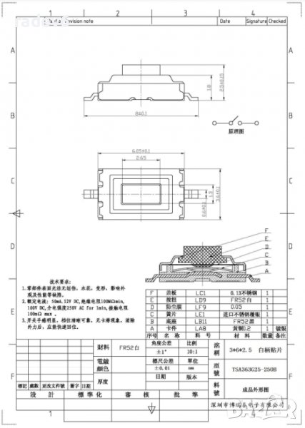 Бутон TSA363G25-250B 6.05x3.6x2.5MM, Tactile Switch, TSA363G25, снимка 1 - Друга електроника - 38302856 Бутон TSA363G25-250B 6.05x3.6x2.5MM, Tactile Switch, TSA363G25, снимка 2 - Друга електроника - 38302856 1/2