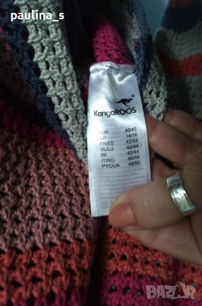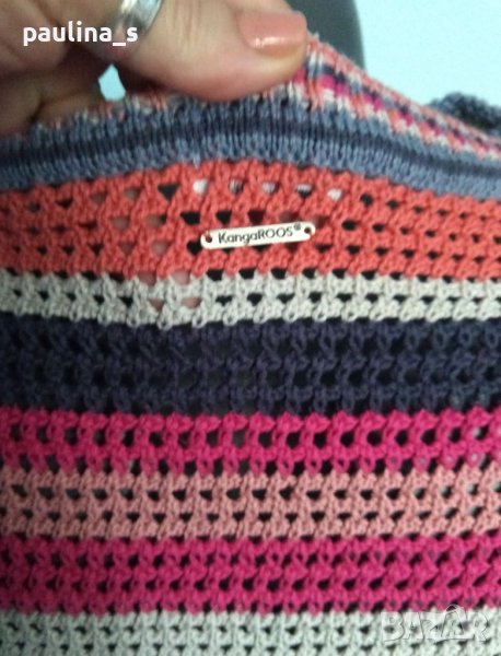 1️⃣ . Колаж / XL / 3XL - "KANGAROOS". Цената е крайна 39,99лв / 19,5 евро. Уникален марков пуловер изплетен на една кука в много свежарска цветова комбинация и спортен стил - може да се носи и като туника. Преждата е мека и хипоалергична, има еластичност и покрива няколко размера. Без дефекти, една бройка.
