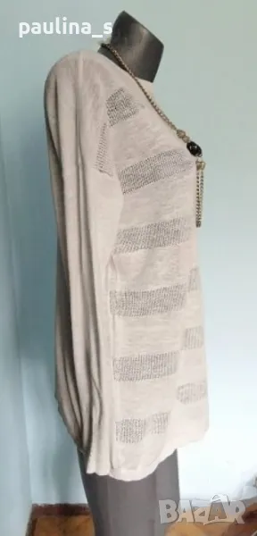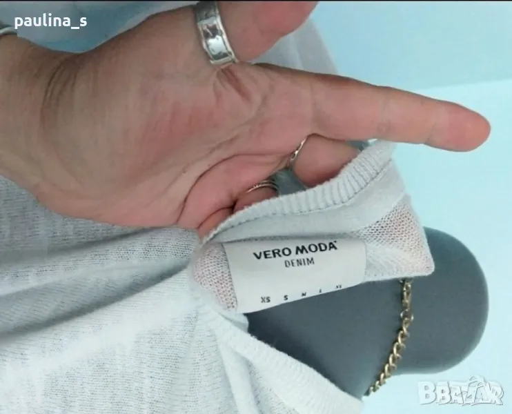 2️⃣. Колаж / XL / 3XL - "Vero Moda" Denim. Цената е крайна 24,99лв / 12,5 евро. Летен пуловер тип туника от памучно плетиво с падащи рамене, материята е еластична и покрива няколко размера, хипоалергична и приятна за носене на голо -100% памук, много ефирна до прозрачност. Цветът е бледо син, подобен на фона. Предната част стои оребрена, особено когато се изглади. Колието се продава с пуловера или отделно и е на цена 14,99лв / 7,5 евро.