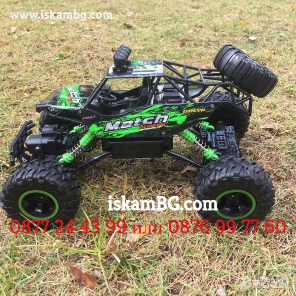 С тази невероятна количка може да изведете децата сред природата и да се забавлявате всички заедно. Rock Crawler 4х4, Off Road RC Monster Truck, катерачът по скали няма да ви разочарова, когато се появи извън пътищата сред суровата природа. Той ще бъде герой със супер силната структура срещу челни сблъсъци и задвижването на 4 колела. Здравата предна рамка за защита срещу удари, предпазва автомобила от катастрофа. Независимите амортисьори правят този автомобил с дистанционно управление 2.4Ghz по-солиден и стабилен. Всичко това дава възможност джипът да се управлява при всякакви пътни условия, без да се забива или обръща. Големите гуми го правят лесен за използване в пясък, скален или бетонен път, килим, керемиди, кал, плитка вода, трева, павета и даже при храсти. Той може да поддържа достатъчно висока средна скорост, докато преодолява препятствия. Силата и само отвержността на тази супер-кола ви кара да я управлявате с радост и вълнение, а децата ще подобрят реакциите и уменията си. Въпреки мощността си, колата е много лесна за работа. Опростеността на посоките и управлението са благоприятни за тези, които сега започват своето приключение с дистанционно управляеми модели.