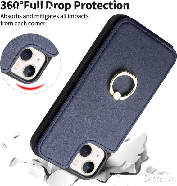 Нов кожен Калъф Кейс Гръб за защита телефон iPhone 14 Plus / 14 Pro Max със стойка пръстен Айфон