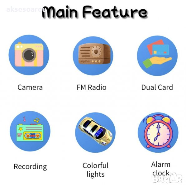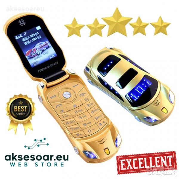 Мобилен телефон GSM с две сим карти Dual Sim отключен нов за ученици студенти с форма на автомобил ф